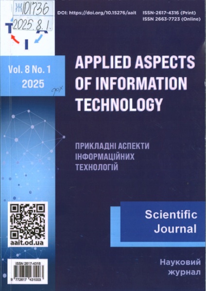 1. APPLIED ASPECTS OF INFORMATION TECHNOLOGY : sci. j. / Odessa Polytechnic Nat. Univ.; ed. board: S. G. Antoshchuk, Stefan Palis (ed.-in-chief) [et al.]. - Odessa: Nauka i Tekhnika, 2018. - з 2023 р., Vol. 6, № 1 виходить англ. мовою. - Назва обкл.: Прикладні аспекти інформаційних технологій. - Виходить щоквартально. - Отримується з 2018. - ISSN 2617-4316. - ISSN 2663-7723