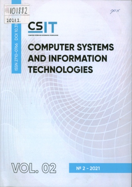 22. КОМП'ЮТЕРНІ СИСТЕМИ ТА ІНФОРМАЦІЙНІ ТЕХНОЛОГІЇ = Computer systems and information technologies: міжнар. наук. журн. / Хмельницький нац. ун-т; редкол.: Т. О. Говорущенко (голов. ред.) [та ін.]. - Хмельницький: [б. в.], 2020. - Текст укр., англ. Рез. англ., укр. - Назва обкл.: Computer systems and information technologies. - Виходить двічі на рік. - Отримується з 2020. - ISSN 2710-0766. - ISSN 2710-0774