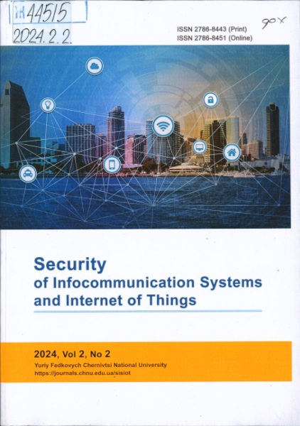 35. SECURITY OF INFOCOMMUNICATION SYSTEMS AND INTERNET OF THINGS: journal / Yuriy Fedkovich Chernivtsi nat. univ.; ed. board: Andrii Samila (ed. in chief) [et al.]. - Chernivtsi: Yuriy Fedkovich Chernivtsi nat. univ., 2022. - Виходить щоквартально. - Отримується з 2023. - ISSN 2786-8443. - ISSN 2786-8451