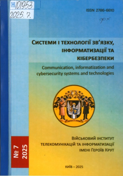38. СИСТЕМИ І ТЕХНОЛОГІЇ ЗВ'ЯЗКУ, ІНФОРМАТИЗАЦІЇ ТА КІБЕРБЕЗПЕКИ = Communication, informatization and cybersecurity systems and technoligies: зб. ст. / Військовий ін-т. телекомунікацій та інформатизації ім. Героїв Крут; редкол.: Г. Д. Радзівілов (голов. ред.) [та ін.]. - Київ: ВІТІ, 2022. - Виходить двічі на рік. - Отримується з 2022. - ISSN 2786-6610