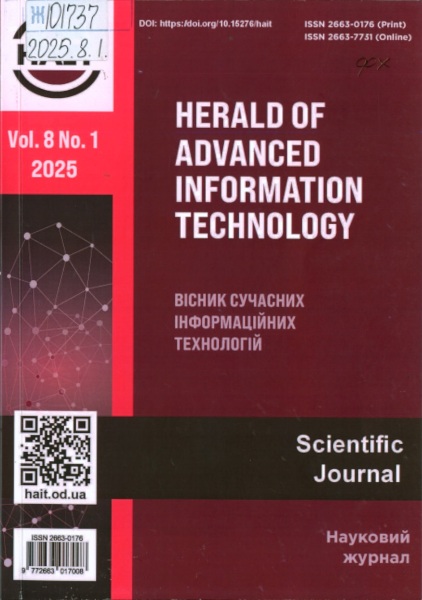 8. HERALD OF ADVANCED INFORMATION TECHNOLOGY : sci. j. / Odessa Polytechnic Nat. Univ.; ed. board: S. A. Babichev, V. I. Lytvynenko (ed.-in-chief) [et al.]. - Odessa: Nauka i Tekhnika, 2018. - Назва на дод.тит.аркуші: Вісник сучасних інформаційних технологій. - Виходить щоквартально. - Отримується з 2018. - ISSN 2663-7731