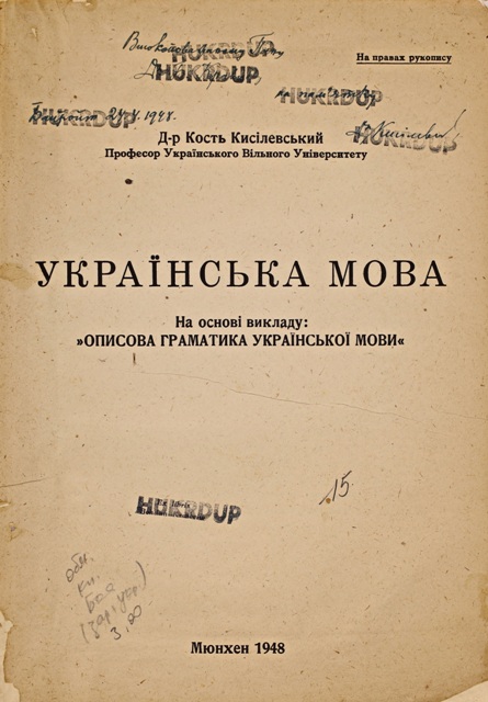 Кость Кисілевський «Українська мова» (1948). Навчальний посібник з граматики, підготовлений у рамках Українського Вільного Університету, важливий для еміграційної освіти.