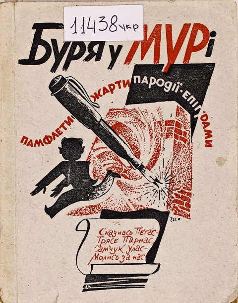 11.Буря у мур'і : пародії, сатири, епіграми, жарти. – [Б. м] : Прометей, 1947. – 81 с. : іл. – Авт. ст., проз. та поет. тв.: М. Зеров, І. Багряний, Г. Черінь, Ю. Косач, Н. Угарті та ін. – Шифр: 11438 укр