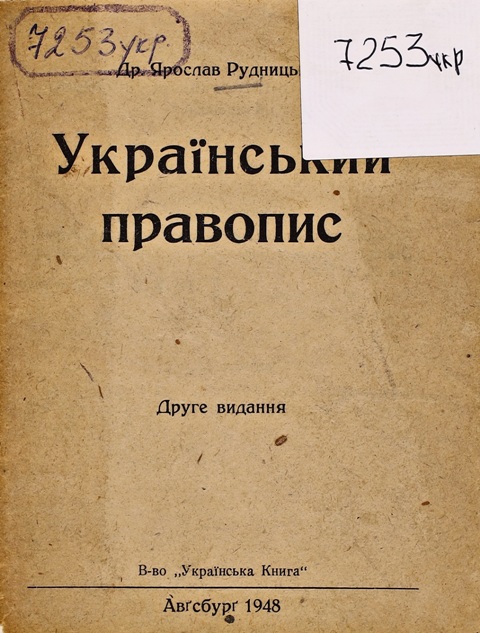 61.Рудницький Я. Український правопис / Я. Рудницький . – 2-е вид. – Авґсбурґ : Вид-во «Укр. Книга», 1948. – ХХХХ с. – Шифр: 7253 укр