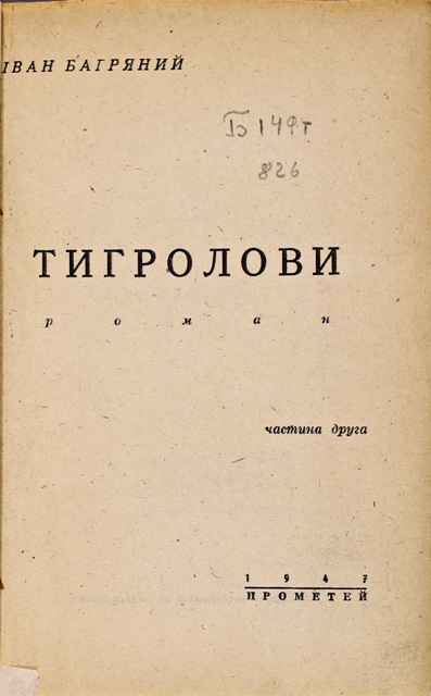 3.Багряний І. Тигролови : роман. Ч. 2 / І. Багряний. – [Б. м.] : Прометей, 1947. – 137, [ 2] с. Шифр: УНД № 1060/2