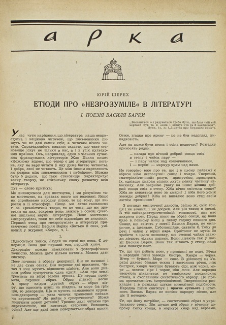 42.Косач Ю. Театр екзистенціялізму / Ю. Косач // Арка: література, мистецтво, критика. – Мюнхен: Українська трибуна. – 1947. – Ч. 1 (липень). – С. 7–9: іл. Шифр: Ж23858 (10906 укр)