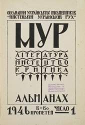 48.МУР: Література. Мистецтво. Критика : альманах. Ч. 1 / ред. Б. Подоляк. – Штутгарт : Прометей, 1946. – 186 с. / Об-ня укр. письменників "Мистецький укр. рух"). – Шифр: 7825 укр, 11266 укр