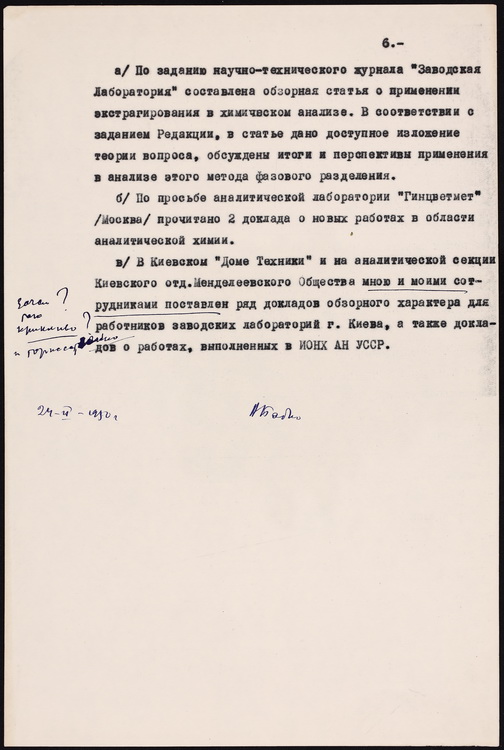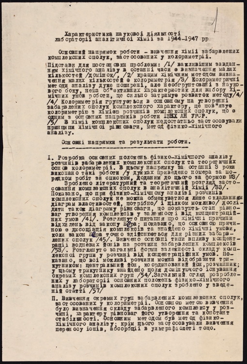 Маємо його лабораторний зошит та складену ним характеристику наукової діяльності лабораторії аналітичної хімії Інституту загальної та неорганічної хімії АН УРСР, яку він очолював.