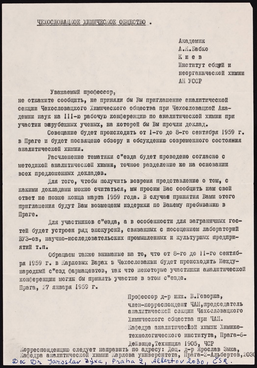 Про міжнародний авторитет українського вченого свідчить його обрання у 1963 р. титулярним членом Комісії з аналітичної хімії Міжнародного союзу теоретичної та прикладної хімії (IUPAC).