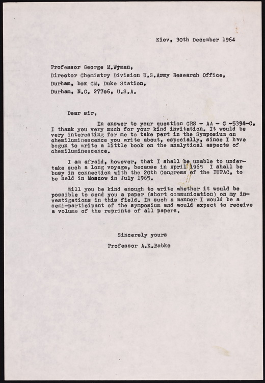 Про активну участь А. Бабка у численних наукових симпозіумах свідчить його листування з іноземними вченими та фотографії, що зафіксували ці події.