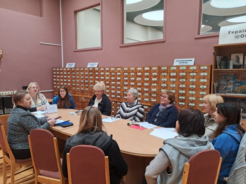 Змістовною була доповідь «Науково-методична робота як важливий чинник прогресу бібліотечної галузі» Г. І. Солоіденко, провідної наукової співробітниці відділу науково-методичної роботи Інституту бібліотекознавства НБУВ, кандидатки історичних наук, старшої наукової співробітниці. Під час виступу було охарактеризовано роботу бібліотек мережі НАН України в умовах воєнного стану, а привернення уваги до проблем захисту та збереження особливо цінних і рідкісних документів викликало чималу зацікавленість присутніх. Доповідачка відзначила, що за понад три роки війни внаслідок масованих авіаційних нальотів, обстрілів ракетами та артилерією українських мирних міст і сіл серйозно постраждала наукова інфраструктура НАН України, частково зруйновано будівлі наукових установ. Попри таку ситуацію бібліотечні фонди пошкоджено не було. Водночас через дефіцит бібліотечних кадрів та неналежне фінансове забезпечення бібліотечні фонди потребують посиленої уваги та збереження, що наразі є актуальною проблемою. В контексті вирішення питань щодо захисту бібліотечних фондів співробітниками відділу науково-методичної роботи Інституту бібліотекознавства НБУВ розроблено і затверджено Інформаційно-бібліотечною радою НАН України «Рекомендації Інформаційно-бібліотечної ради НАН України з питань збереження фондів бібліотек наукових установ НАН України у період війни і повоєнного відновлення», які було направлено керівникам установ та бібліотечним працівникам наукових установ. Також здійснюється підготовка аналітичної довідки «Про стан зберігання особових бібліотек, колекцій, цінних і рідкісних видань у бібліотеках наукових установ НАН України в умовах війни (2022–2025)», в якій ці питання матимуть комплексне відображення.