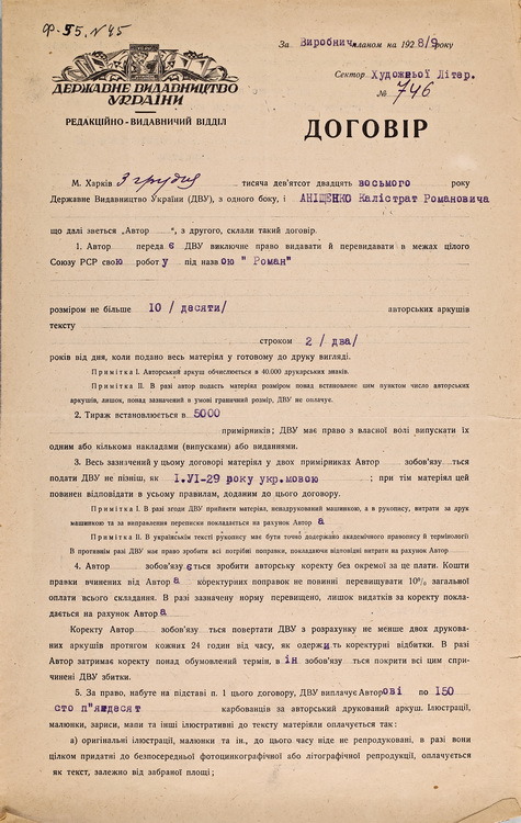 Архівний фонд Калістрата Романовича Анищенка надійшов до відділу рукописів (нині – ІР НБУВ), імовірно, наприкінці 30-х – початку 40-х років ХХ ст. і нараховує 116 од. зб. Документи К. Анищенка зберігаються і в інших фондах Інституту, зокрема у ф. I, ф. Х, ф. 54 та ф. 274. Переважну більшість фонду складають наукові і творчі документи, а саме: «Откуда? (Из русско-японской войны 1905 г.)» (1908), «Кулина» (1920), «Ткачихи», «Сверчек», «Ночь в саду», «Чечевица» (1923), «Мать» (1924–1925), «Логическая машина» (1925), «Мироносицы» (1925–1926) та ін. (частина з них не опублікована); статті, фейлетони, нотатки, робочий щоденник за 1926 р., бібліографічні і біобібліографічні записи (1918–1928) та документи його літературної діяльності – договори про видання творів з різними видавництвами.