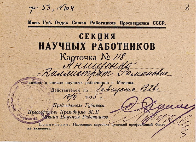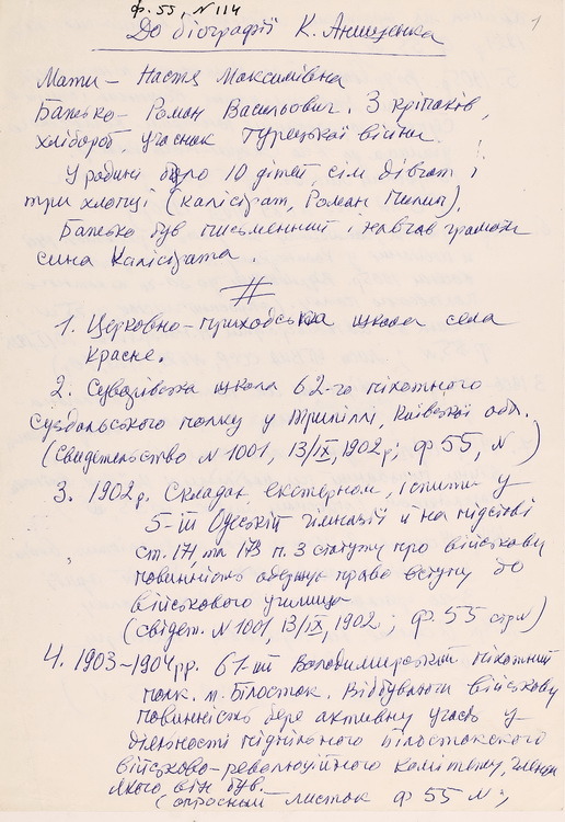 Серед невеликої кількості біографічних матеріалів Анищенка: автобіографія, документи про освіту, послужний список, службові посвідчення.