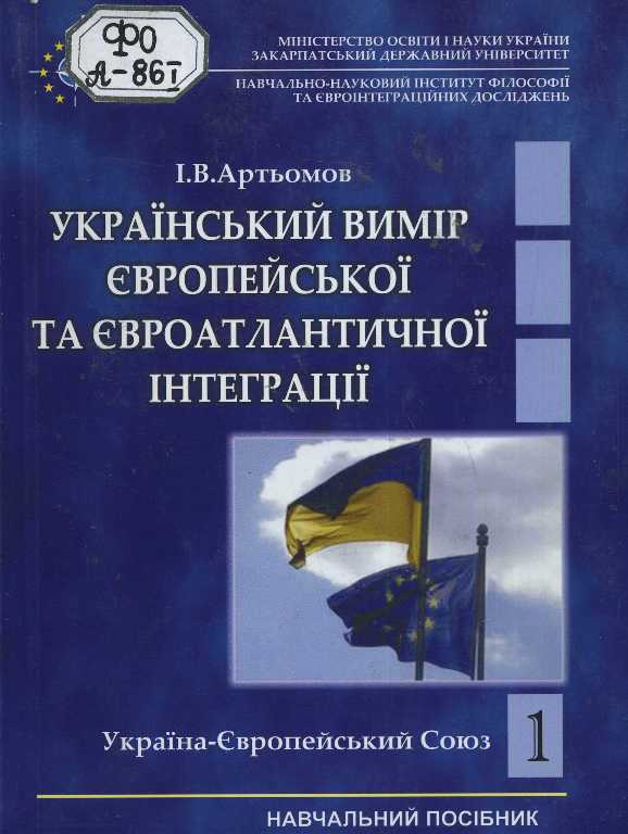 Український вимір європейської та євроатлантичної інтеграції [Текст] : навч. посібник: у 2 кн. / І. В. Артьомов. - Ужгород : Закарпатський держ. ун-т. Навчально-науковий ін-т філософії та євроінтеграції, 2008 .