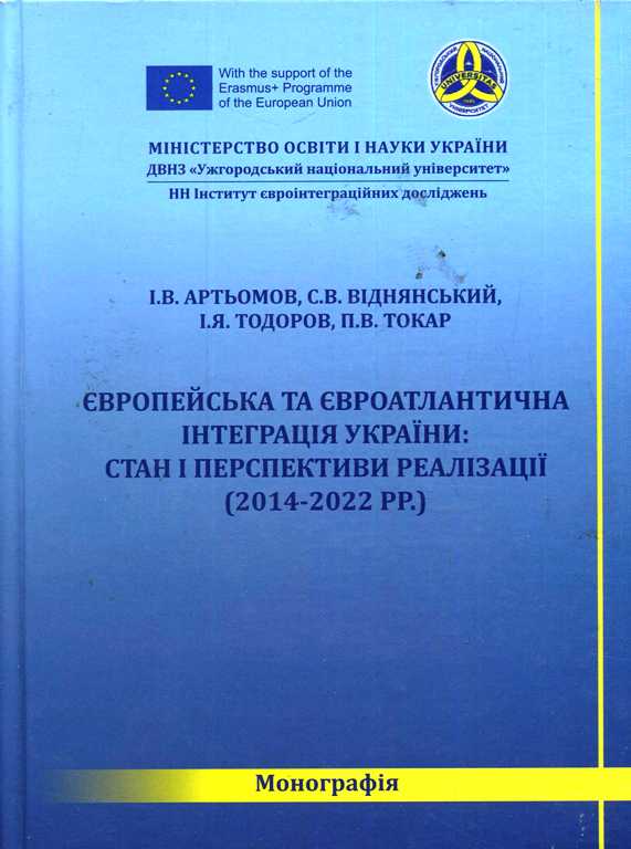 13. Європейська та євроатлантична інтеграція України: стан і перспективи реалізації (2014-2022 рр.) [Текст] : монографія / І. В. Артьомов [та ін.] ; ДВНЗ "Ужгород. нац. ун-т", Навч.-наук. ін-т євроінтеграц. дослідж. - Ужгород : ДВНЗ "УжНУ", 2022. - 282 с.