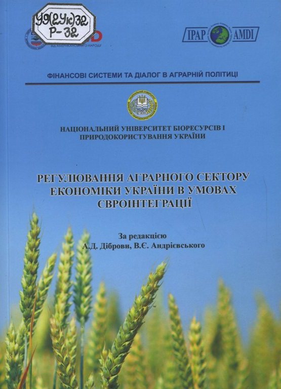 49. Регулювання аграрного сектору економіки України в умовах євроінтеграції [Текст] : [монографія] / [Діброва А. Д. та ін.] ; за ред. А. Д. Діброви, В. Є. Андрієвського ; Нац. ун-т біоресурсів і природокористування України, Ін-т розвитку аграр. ринків. - Київ : Інтердрук, 2014. - 572 с.