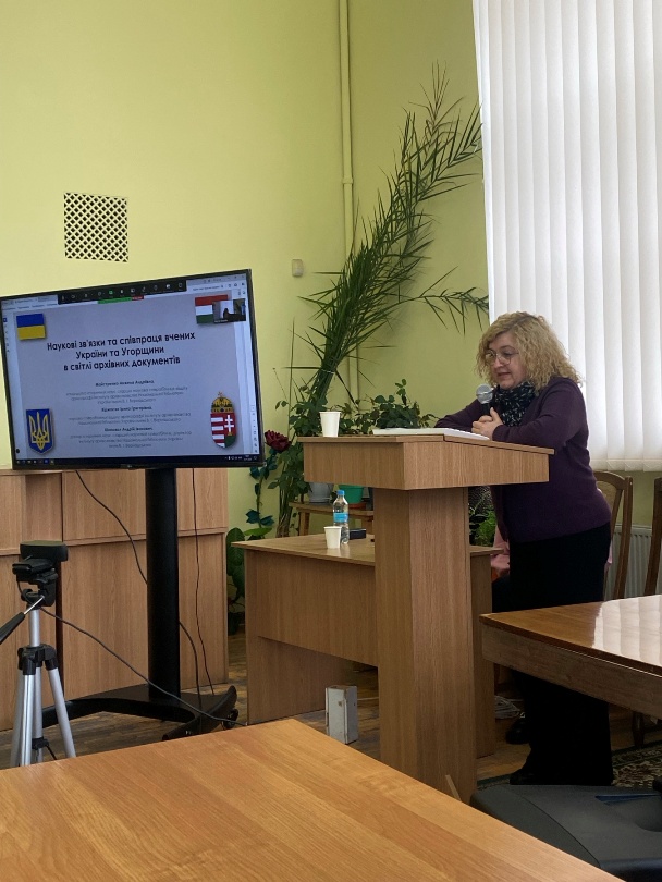 Широкий арсенал документів, чимало з яких є унікальними, продемонстрував у презентації «Наукові зв'язки та співпраця вчених України та Угорщини в світлі архівних документів» колектив науковців Національної бібліотеки України імені В.І. Вернадського: доктор історичних наук, старший науковий співробітник, директор Інституту архівознавства НБУВ Андрій Іванович Шаповал, кандидат історичних наук, старший науковий співробітник відділу археографії Інституту архівознавства НБУВ Анжела Андріївна Майстренко, науковий співробітник відділу археографії Інституту архівознавства НБУВ Ірина Григорівна Кіржаєва. Презентувала цю колективну роботу Анжела Андріївна Майстренко.