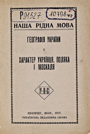 9. Возняк М. Наша рідна мова, географія України і характер українця, поляка і москаля. Вінніпег : Укр. Визвол. Спілка, 1917. 30 с. Шифр: 10798 укр.