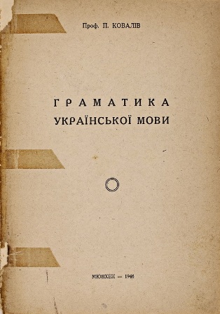 45. Ковалів П. Граматика української мови. Мюнхен : [б. в.], 1946. 148 с. (Друк. Дмитра Сажина). Шифр: 7232 укр.