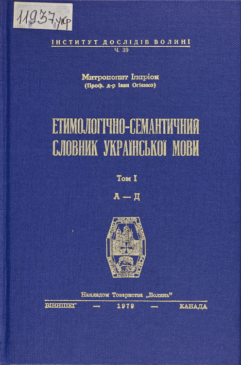 133. Rudnyc`kyj J. B. An Etymological Dictionary of the Ukrainian Language. Рt. 1. Winnipeg : 1962 Ukrainian Free Acad. of Sciences. 96 p. Шифр: 13342 укр.
