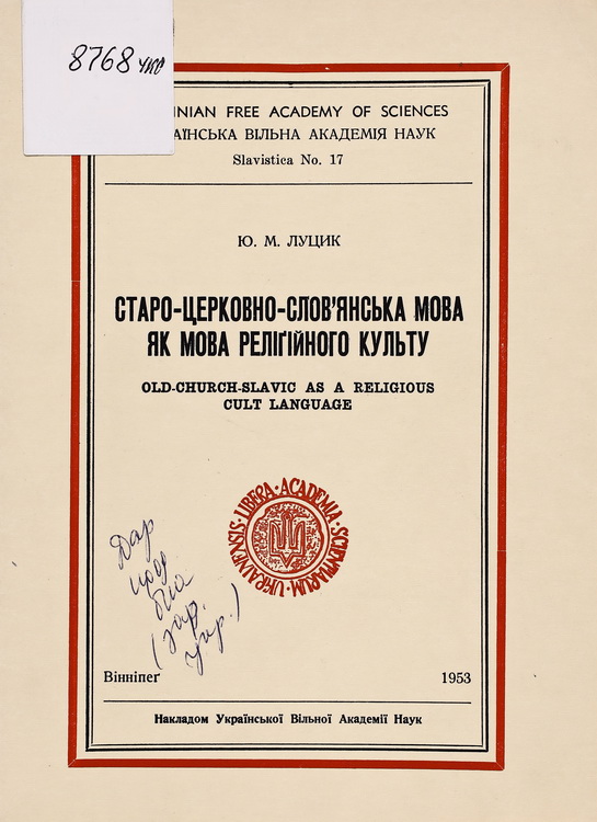101. Рудницький Я. Становище української й інших слов'янських мов у Канаді. Вінніпег : УВАН, 1971. 32 с. (Slavistica ; ч. 70). Шифр: 8567/9 укр.