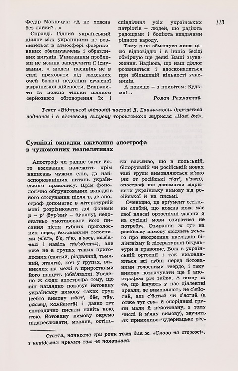 11. Горбач О. Сумнівні випадки вживання апострофа в чужомовних неапелятивах // Сучасність. 1970. Ч. 1 (109). С. 113–115. Шифр: ВЗУ ІК НБУВ