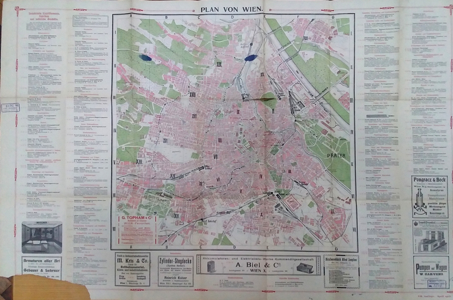 До 1890р. місто ще було обнесене ровом і валом ( побудовані в 1704р. для захисту його мешканців від набігів турків), які відділяли місто від передмість (Vororta) і мали назву «Лінієвал» або «Лінія». І хоча ще в 1871р. обговорювалося питання про знищення «Ліній» і повне адміністративне об’єднання міста і передмість, реалізувати це вдалося лише після 1890 року. Після приєднання передмість, з’явилося ще 9 нових округів, а Відень перетворився на «Великий Відень» («Grossburg» або «Gross-Wiena»), поділений на 19 округів. Як виглядали округи, їх назви та розташування схематично показано на звороті плану Відня (поз .№ 7 Переліку). З зовнішнього боку «Лінієнвалу» була прокладена Гюртельштрасе, що стала другою кільцевою вулицею Відня.