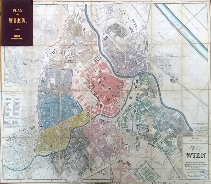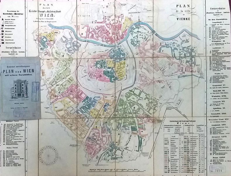 Округи Відня, що відображалися, практично,на всіх картографічних документах того періоду, мали цифрове позначення (римські цифри), а також назви, на деяких планах вони крім того, виділялися різними кольорами.