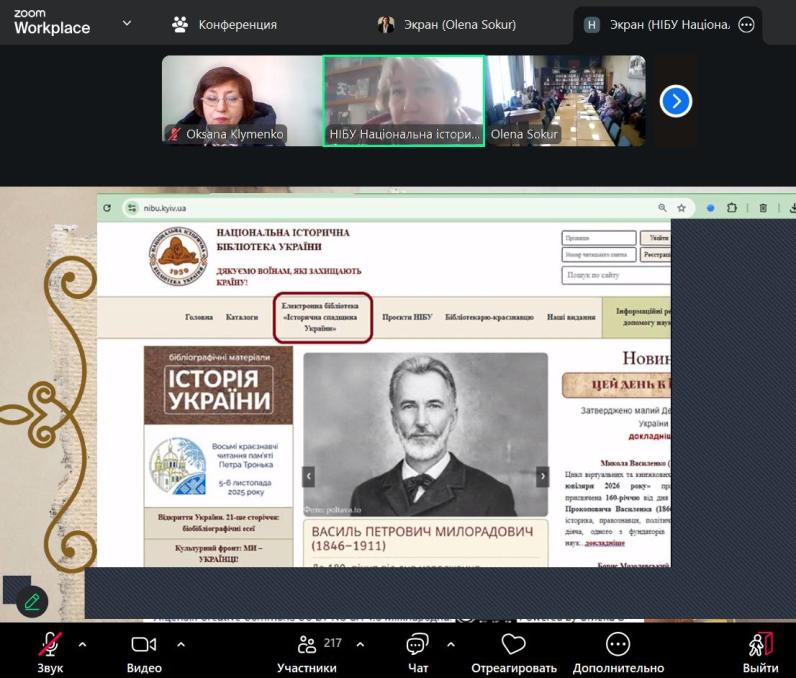 4 березня 2026 року відбувся тематичний науково-методичний семінар у рамках підвищення кваліфікації бібліотекарів «Україніка у цифровому форматі», організований Інститутом бібліотекознавства спільно з Радою молодих вчених Національної бібліотеки України імені В. І. Вернадського.