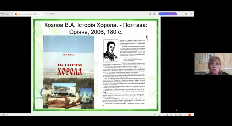 4 березня відбулася ХІ Всеукраїнська наукова конференція «Теоретичні та прикладні аспекти біографістики: доба романтизму в особистісному вимірі (до 220-річчя від дня народження Левка Івановича Боровиковського)», організована в онлайновому режимі Харківським національним університетом імені В. Н. Каразіна, зокрема, його підрозділами: кафедрою українознавства Навчально-наукового інституту філософії, культурології, політології Харківського національного університету імені В. Н. Каразіна, Центром українських студій та краєзнавства імені академіка П. Т. Тронька, відділом українських студій імені Д. І. Багалія, Центральною науковою бібліотекою університету. Інститут біографічних досліджень НБУВ цьогоріч також виступив її співорганізатором.