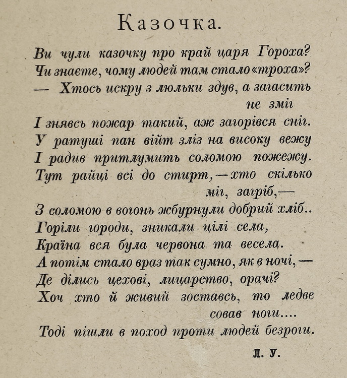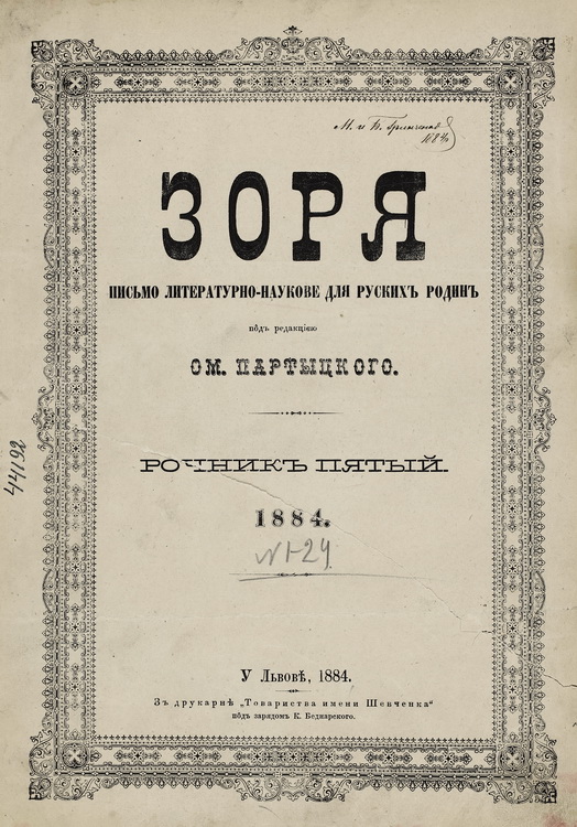 Перші літературні твори юної Лариси Косач були опубліковані у львівському літературно-науковому і громадському двотижневому часописі «Зоря» (1880–1897), який з 1885 р. став органом Літературного товариства ім. Т. Шевченка (згодом — Наукового товариства ім. Т. Шевченка).