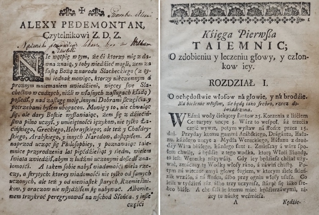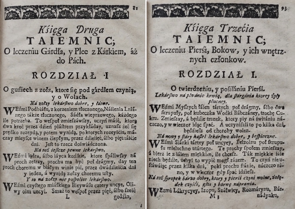 У 1737 р. у Супраслі вийшов друком перекладений із латинської на польську мову медичний порадник «Tajemnice wszystkim oboiey płci, nie tylko ku leczeniu rozmaitych chorob, począwszy od glowy, aż do stop, barzo potrzebne; ale y gospodarzom, rzemieślnikom, zwłaszcza przednieyszych y subtelnieyszych robot, do ich rzemiosł należących, y innym wielce pożyteczne» (Дуже корисні всім чоловікам і жінкам секрети не лише для лікування різних хвороб, від голови до ніг, але також землеробам і ремісникам, особливо тим, хто займається найтоншою роботою) італійського фізика, алхіміка, географа та картографа Джироламо Рушеллі (іл. 11–12). Видання, надруковане під псевдонімом Alessio Piemontese, завершується польсько-латинським словником.