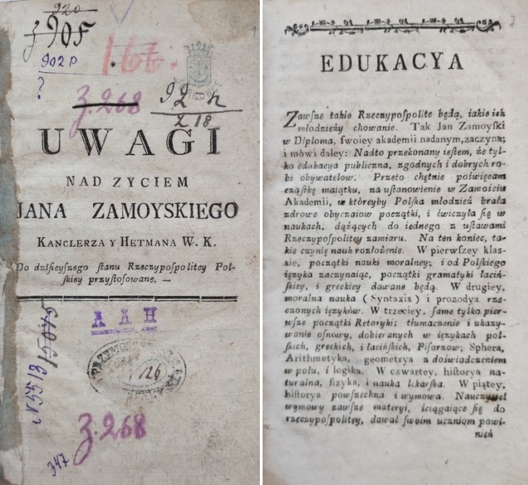 Супрасльські контрафактні видання, тобто перепубліковані без зазначення вихідних відомостей популярні у читачів, часто заборонені твори, які добре продавались і приносили прибуток, можна ідентифікувати лише за шрифтами й окремими елементами оформлення. Одне з таких видань – це надрукований анонімно політичний трактат польського громадського й освітнього діяча, письменника, публіциста, філософа Станіслава Ксаверія Сташиця «Uwagi nad życiem Jana Zamoyskiego» (1787?), в якому автор виклав план реформи державного устрою Польщі (іл. 36). В 1789 р. супрасльські друкарі видали анонімно алегоричний політичний памфлет письменника та публіциста Вінцентія Ігнатія Маревича «Polusia corka kołodzieja czyli Wolność oswobodzona. Opera tragiczna w dwoch aktach» (іл. 37).