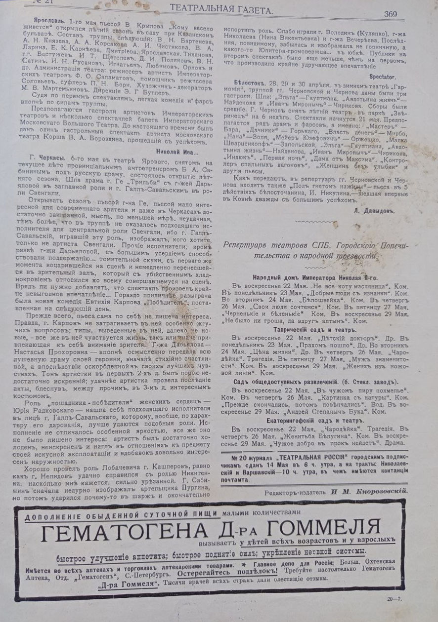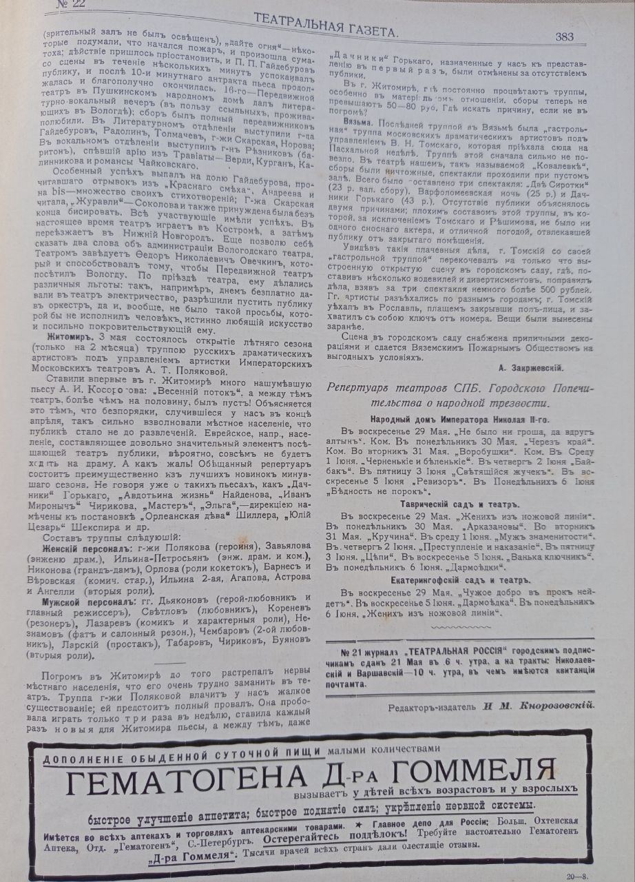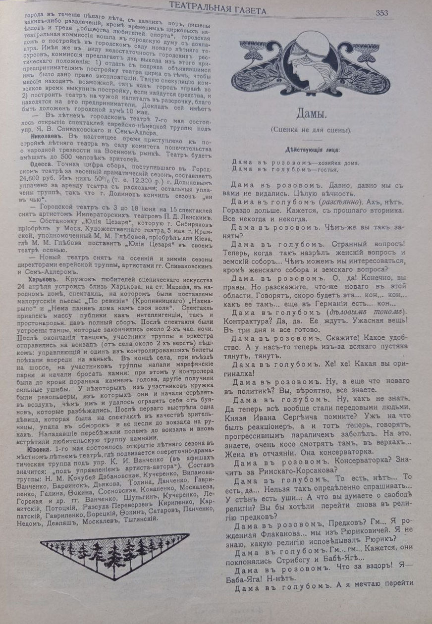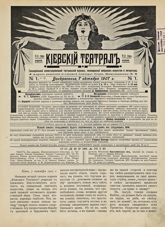щоденна газета, що виходила у 1908–1916 рр. російською мовою. Видання публікувало програми та лібрето вистав місцевих і гастрольних театрів. Загалом було видано 2507 номерів, які збереглися до нашого часу. На сторінках газети друкувалися матеріали, присвячені літературі, мистецтву, театру, музиці та новинам кінематографа, а також рецензії, театральна хроніка та рекламні оголошення.