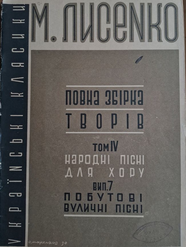 Так сталося, що майже одночасно зі 140-річчям від дня народження Олексія Маренкова – українського художника-авангардиста, чия творчість не зовсім очікувано для мистецтвознавців збереглася саме в нотних виданнях, відділ музичних фондів НБУВ став співучасником і партнером проєкту «Ілюстротека. Українська ілюстрація в діалозі двадцятих» Мистецького арсеналу. Виставка присвячена дослідженню сюжетів української графіки першої третини ХХ століття та їхнього зв’язку із сучасною ілюстрацією й мистецтвом ( Іл. 15). Наш відділ буде представлено електронними копіями видань того періоду (в тому числі з графікою О.Маренкова).