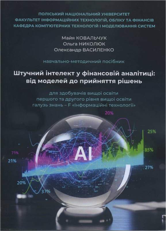 Навчально-методичний посібник охоплює теоретичний матеріал і прикладні компетентності у сфері використання методів штучного інтелекту для аналізу фінансових даних, оцінки ризиків та підтримки прийняття управлінських рішень. Він систематизує еволюцію підходів від класичного машинного навчання (регресійні моделі, дерева рішень) до складних архітектур глибокого навчання (LSTM) трансформерні моделі) та великих мовних моделей (LLMs) у фінансовому контексті.