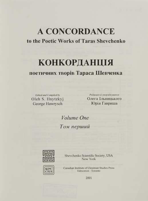 Конкорданція поетичних творів Тараса Шевченка / Ільницький О., Гавриш Ю. (упоряд.): В 4 т. – Торонто, 2001. – /Наукове Товариство Шевченка в Америці; Канадський інститут українських студій при Альбертському університеті в Едмонтоні).