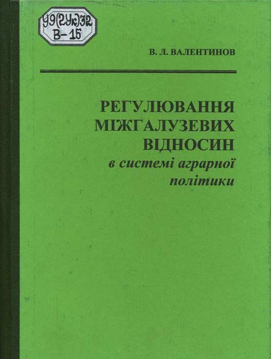 Регулювання міжгалузевих відносин в системі аграрної політики [Текст] / В. Л. Валентинов ; Інститут аграрної економіки УААН. - К. : [б.в.], 2003. - 330 с.