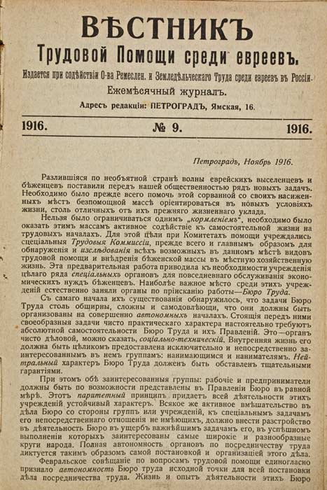 Процес переходу євреїв до фізичної праці все прискорювався, і цілком природно, що саме ремісники та некваліфіковані робітники емігрували в першу чергу. За десять років до Першої світової війни в Росії виникли сотні товариств взаємного кредиту, які фінансували сезонні роботи, закупівлю сировини і заготівлю товарів для ярмарків, а також надавали підтримку у випадку хвороби і т. п. Ці організації приходили на допомогу і дрібним торговцям.