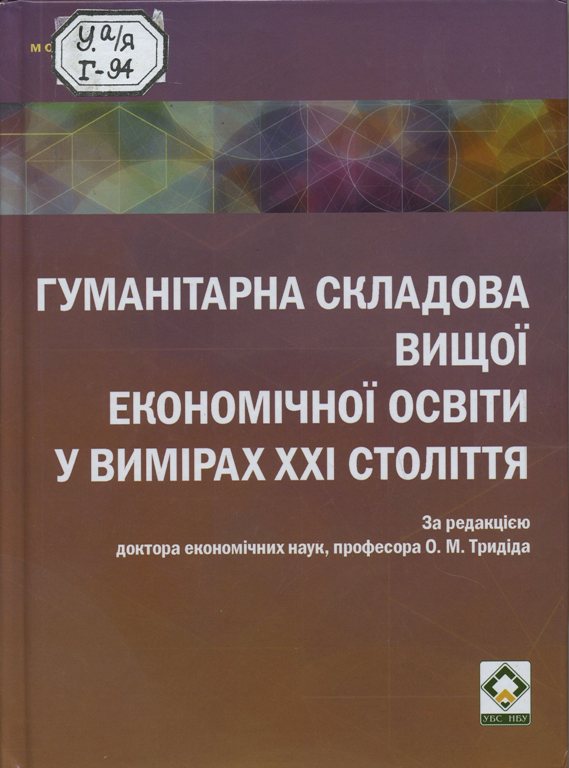 9. Гуманітарна складова вищої економічної освіти у вимірах ХХІ століття [Текст] : монографія / [М. С. Дороніна та ін.] ; за ред. д-ра екон. наук, проф. О. М. Тридіда ; Нац. банк України, Ун-т банк. справи. - К. : УБС НБУ, 2013. - 323 с.