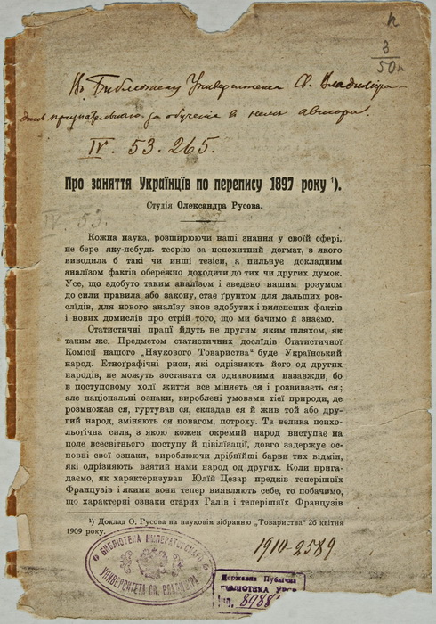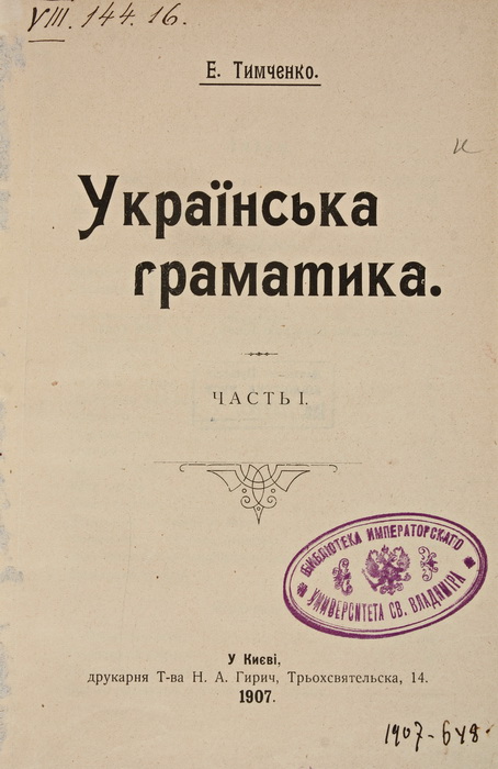 9 листопада наша країна відзначає надзвичайно важливе для держави свято – День української писемності та мови. Встановлено це свято в 1997 р. Указом Президента України Леоніда Кучми з метою відзначення важливої ролі української мови в консолідації українського суспільства, демонстрації її багатства та краси. За православним календарем – це день вшанування пам'яті Преподобного Нестора-Літописця – послідовника творців слов'янської писемності Кирила і Мефодія. Киянин-монах Нестор отримав визнання завдяки праці «Повість временних літ» – першої в Київській Русі рукописної пам’ятки, складеної на початку XII ст., в якій показана історія держави на тлі світових історичних подій. У цей день в Україні традиційно відбуваються різноманітні заходи. Долучився до них і відділ бібліотечних зібрань та історичних колекцій Інституту книгознавства, який на порталі НБУВ представляє дану електронну виставку під назвою «Україномовна книга в фундаментальній бібліотеці Київського університету св. Володимира». Університетська книгозбірня має цікаву історію, тісно пов’язану з історією самого університету. І хоча, заснований у 1834 р. на матеріальній та кадровій базі Кременецького ліцею, Київський університет св. Володимира поступово став закладом русифікаторської політики російського самодержавства на українських землях (викладання в університеті проводилось російською мовою, так само як і написання наукових праць), проте у фонді фундаментальної університетської бібліотеки були в наявності документи українською мовою. Становище україномовної книги в університетській бібліотеці повністю відображало становище української культури, зокрема україномовної книги в Російській імперії ХІХ – початку ХХ ст. Якщо у першій половині ХІХ ст. україномовні видання ще видавалися в деяких містах Російської імперії та за кордоном (Санкт-Петербург, Відень), а розквіт національного книговидання припав на кінець 50-х – на початку 60-х років ХІХ ст., коли поява недільних шкіл зумовила потребу книгодрукування букварів та підручників для початкового навчання. То у другій половині ХІХ – на початку ХХ ст. становище української культури стало особливо тяжким. Народ України, поділений між Російською та Австро-Угорською монархіями, був позбавлений можливості для повноцінного розвитку. В Галичині переважна більшість природничої, технічної, сільськогосподарської літератури видавалася німецькою або польською мовами. У Східній Україні російське самодержавство спрямувало свої зусилля на пряме придушення української національної культури, що призвело до негативних явищ в усіх сферах діяльності. Міністр внутрішніх справ Росії П. Валуєв 30 (18 липня) 1863 р. видав циркуляр, яким суворо заборонялося друкування українською мовою книг «навчальних і взагалі призначених для початкового читання народу». Слова з валуєвського циркуляра про те, що самої української мови як такої «не було, немає і бути не може», є свідченням антиукраїнського спрямування внутрішньої політики царського уряду. Наступний Ємський указ імператора Олександра П від 18 (30 травня) 1876 р. заборонив видання будь-яких книжок українською мовою, крім історичних документів, етнографічних матеріалів і дозволеної цензурою художньої літератури. Видавці, державні установи та громадські організації були зму