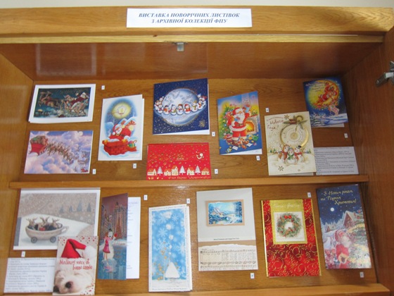 У читальному залі Фонду Президентів України Національної бібліотеки України імені В.І.Вернадського відкрилася виставка новорічних та різдвяних листівок з привітаннями Президентам нашої держави. В експозиції представлено понад півсотні поздоровних карток з архівної колекції фонду. Співробітники бібліотеки підготували для відвідувачів добірку поштівок, які охоплюють період з 1994 по 2015 рр.