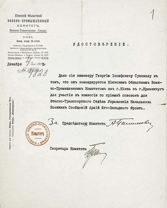 Для виставки відібрано 25 оригінальних документів з особового фонду № 25 «Сухомел Георгій Йосипович (11.09.1888–18.07.1966) – академік АН УРСР за спеціальністю «гідравліка і гідротехніка (технічна механіка рідин, гідротехнічні науки)» (1951)», який зберігається в Інституті архівознавства НБУВ.