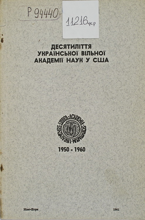 34. Десятиліття Української Вільної Академії у США: 1950 – 1960. Нью-Йорк, 1961. – 32 с.: іл. – (Відбиток із вкладного листа газети «Свобода» № 91, 13 травня 1960 року).