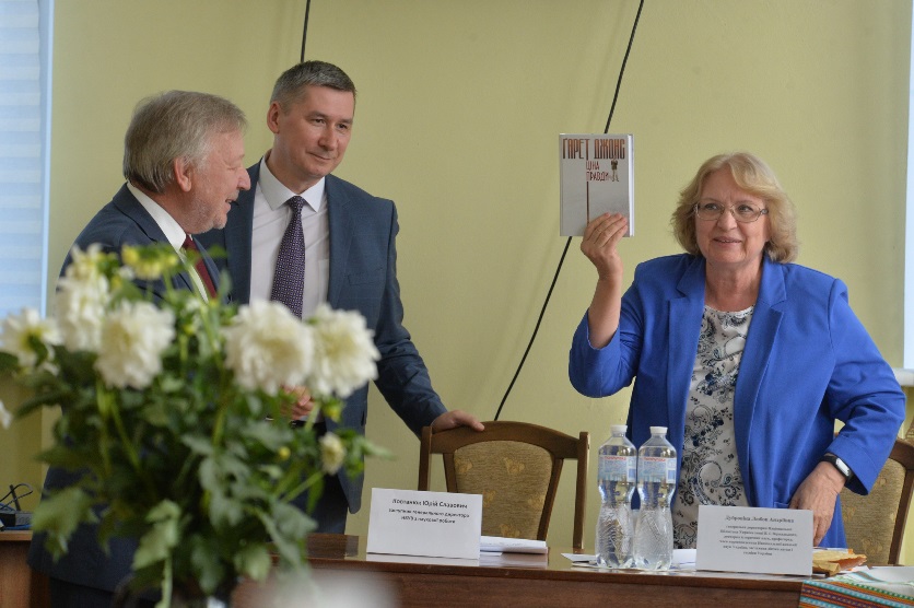 Дослідниці теми «Ґарет Джонс у контексті журналістської освіти: досвід Навчально-наукового інституту журналістики Київського національного університету імені Тараса Шевченка» Марина Іванівна Женченко, професорка кафедри видавничої справи та редагування Навчально-наукового інституту журналістики Київського національного університету імені Тараса Шевченка, спів-ініціаторка проєктів, присвячених Голодомору, співвидавчиня книжок «Журналіст Ґарет Джонс» та «Ціна правди. Ґарет Джонс», докторка наук із соціальних комунікацій, та Ярослава Василівна Прихода, доцентка кафедри видавничої справи та редагування Навчально-наукового інституту журналістики Київського національного університету імені Тараса Шевченка, ініціаторка і керівниця видавничого проєкту «Журналіст Ґарет Джонс», кандидатка філологічних наук, ознайомивши учасників круглого столу з етапами й висновками досліджень, подарували Національній бібліотеці України імені В.І. Вернадського книги зазначеної тематики.