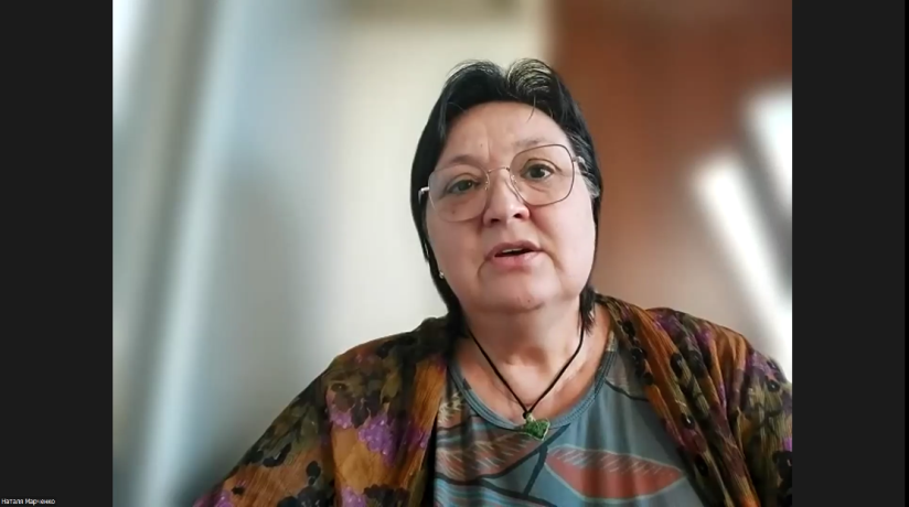 Доповідь Наталії Петрівни Марченко, старшої наукової співробітниці відділу теорії та методики біобібліографії Інституту біографічних досліджень НБУВ, кандидатки історичних наук, «Форми нетравматичного фіксування та переповідання складних біографічних наративів дітям (на основі книжки Наталі Савчук «Тато мій Петлюра» (Тернопіль : Навчальна книга – Богдан, 2024)» представила її як дослідницю й водночас авторку книг для дітей. У доповіді поєднувалися власні креативні ідеї й системний аналіз проблем нетравматичної оповіді. Доповідачка наголосила на необхідності роботи з історичною свідомістю дітей у молодшій школі, а також підкреслила важливість ролі літератури, яка б базувалася на психологічних і вікових особливостях дітей і обов’язково залучала б новітні комп’ютерні технології.
