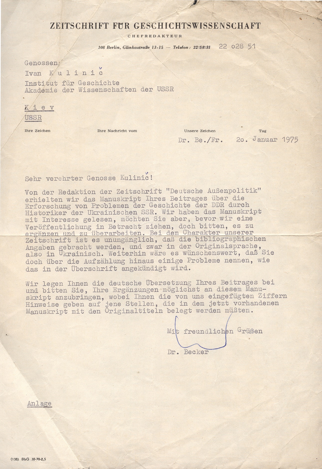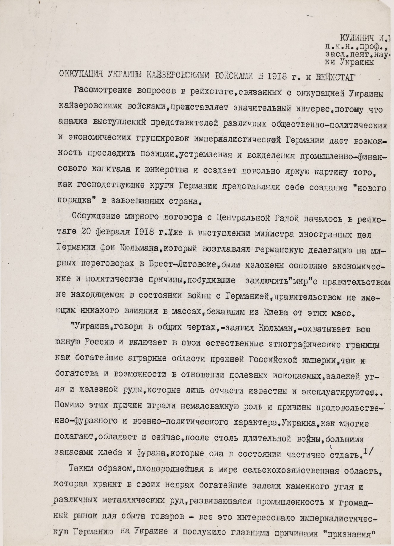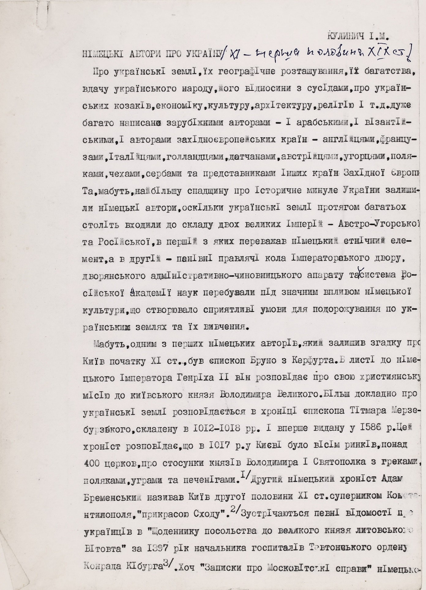 15 серпня 2024 року українська наукова громада відзначила поважну дату – 100-річчя від дня народження Івана Марковича Кулинича, видатного германіста, доктора історичних наук, професора Інституту історії НАН України. Роль Івана Марковича у формуванні української історичної германістики важко переоцінити. Його наукові студії, педагогічна діяльність, активна громадська робота, а також внесок в просування української гуманітарної науки надають йому заслуженого статусу одного з провідних діячів української історичної науки свого часу. Відомий своїми історико-культурними дослідженнями Німеччини, українсько-німецьких зав’язків, німецької громади України, Іван Кулинич започаткував чимало наукових напрямів у цій сфері, створив школу молодих учених та сприяв наведенню містків між українською та західноюєвропейською науками.