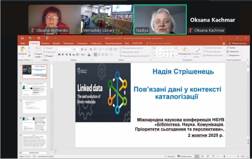 2 жовтня 2025 року в рамках Міжнародної наукової конференції «Бібліотека. Наука. Комунікація. Пріоритети сьогодення та перспективи» відбулося засідання секції «Бібліотечно-інформаційний комплекс: міжнародна взаємодія та сталий розвиток» у читальній залі НБУВ та онлайн на платформі Zoom (модераторка заходу – О. Л. Сокур, кандидатка наук із соціальних комунікацій, завідувачка відділу науково-методичної роботи Інституту бібліотекознавства Національної бібліотеки України імені В. І. Вернадського.