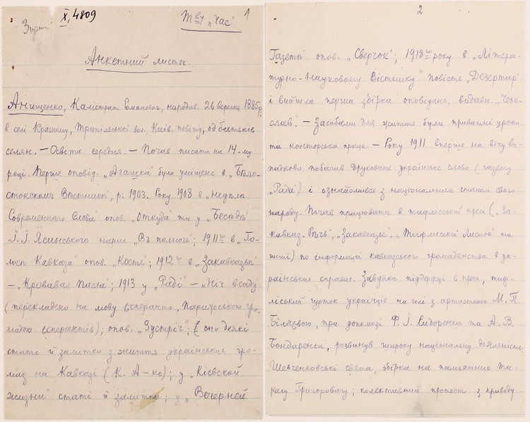 молодший науковий співробітник відділу фондів рукописної спадщини