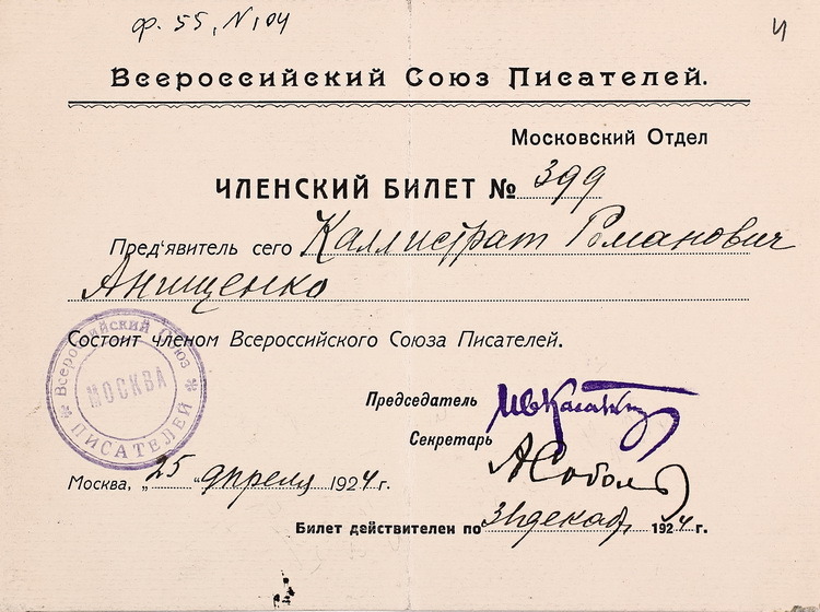 Ховаючись від переслідувань поліції, Калістрат Романович опинився на Кавказі, працював у тбіліській пресі. У фондах Одеської національної наукової бібліотеки зберігаються листи К.Р. Анищенка до М.Ф. Комарова, які дають уявлення про життя письменника у 1912–1913 рр. Цей період характеризується активним підйомом творчості Калістрата Романовича [Мороз-Стрілець. Літературна Україна, 1970, 6 жовтня].